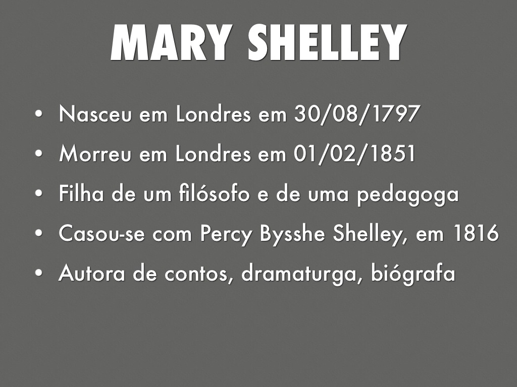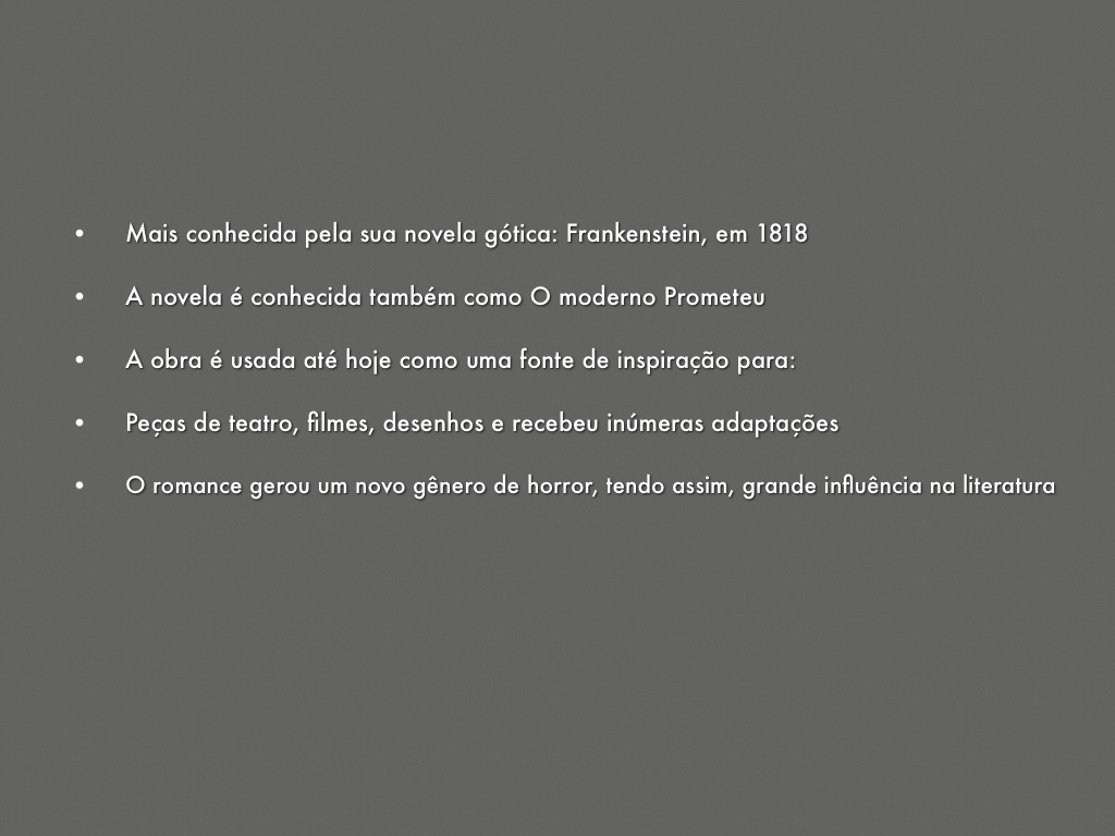 • Mais conhecida pela sua novela gótica: Frankenstein, em 1818