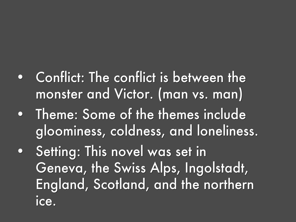 Conflict: The conflict is between the monster and Victor. (man vs. man)