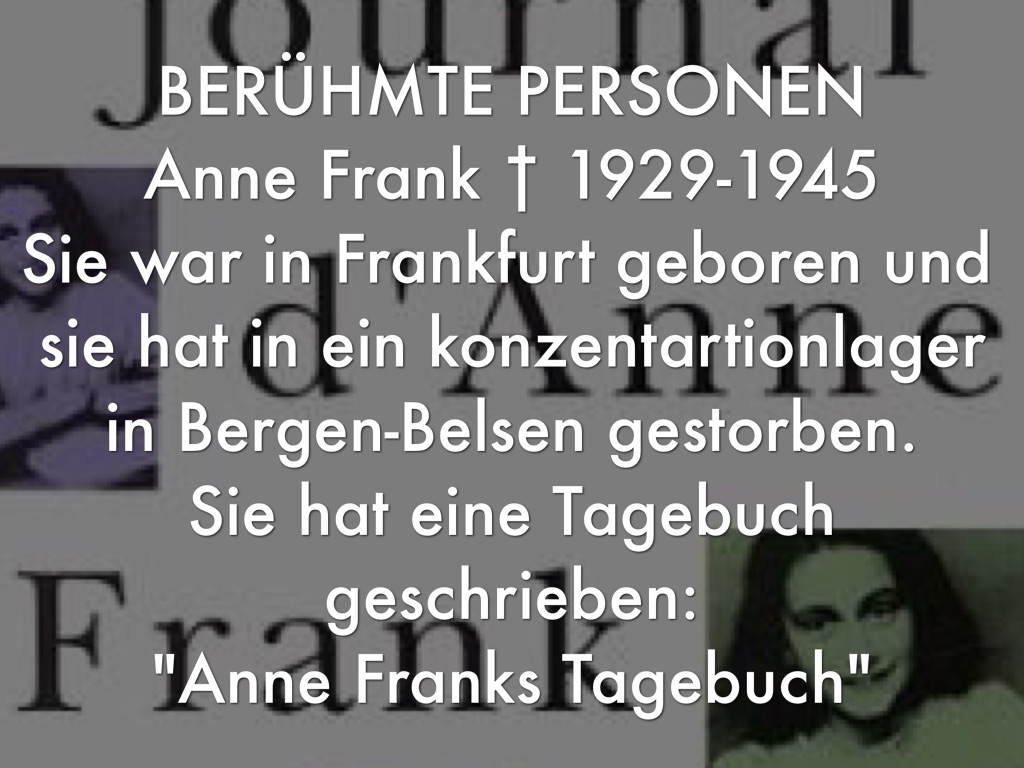 Sie war in Frankfurt geboren und sie hat in ein konzentartionlager in Bergen-Belsen gestorben.