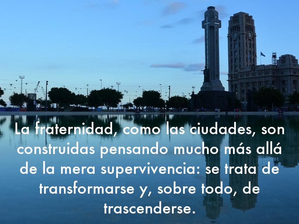 La fraternidad como las ciudades, son algo más que un trozo de tierra, no pertenecen a un país, ni a nadie más que a los que las habitan.