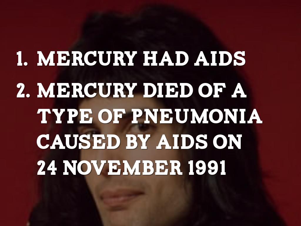 Mercury died of a type of pneumonia caused by AIDS on 24 November 1991