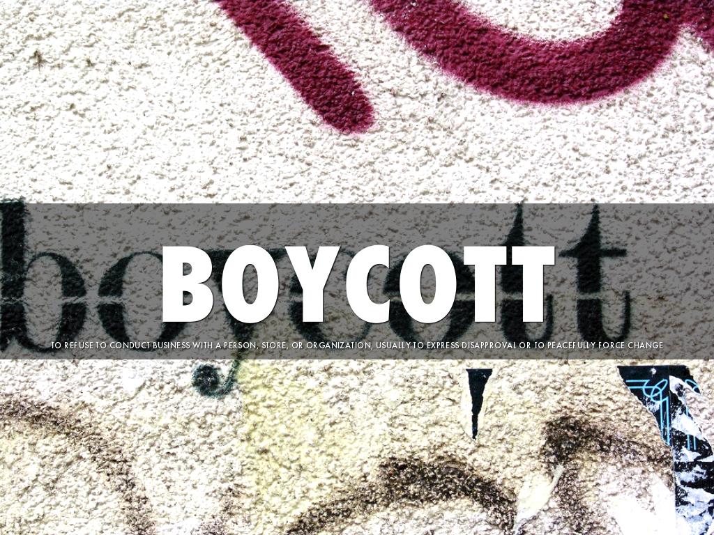 TO REFUSE TO CONDUCT BUSINESS WITH A PERSON, STORE, OR ORGANIZATION, USUALLY TO EXPRESS DISAPPROVAL OR TO PEACEFULLY FORCE CHANGE