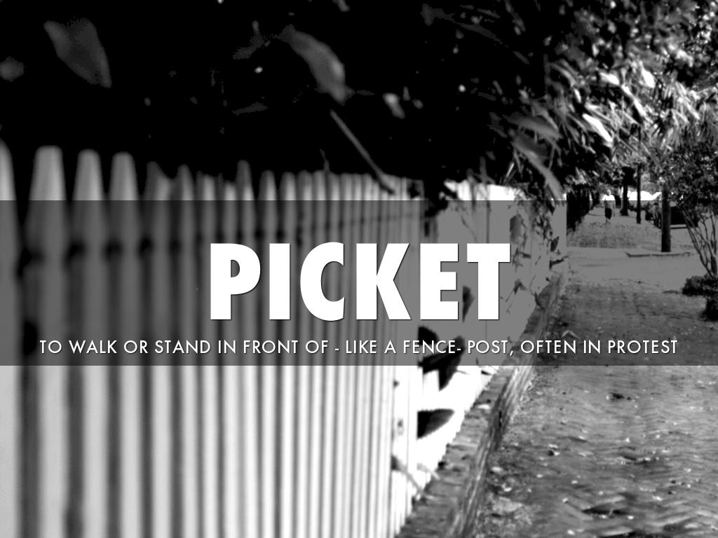 TO WALK OR STAND IN FRONT OF - LIKE A FENCE- POST, OFTEN IN PROTEST