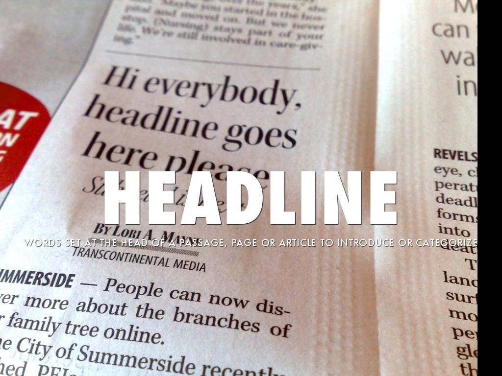 WORDS SET AT THE HEAD OF A PASSAGE, PAGE OR ARTICLE TO INTRODUCE OR CATEGORIZE