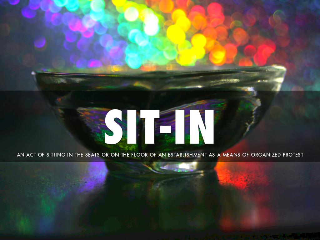 AN ACT OF SITTING IN THE SEATS OR ON THE FLOOR OF AN ESTABLISHMENT AS A MEANS OF ORGANIZED PROTEST