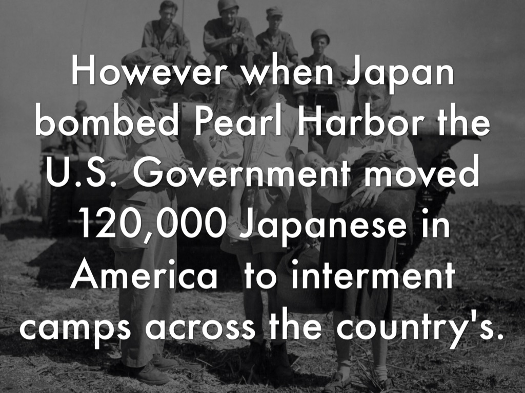 However when Japan bombed Pearl Harbor the U.S. Government moved 120,000 Japanese in America to interment camps across the country's.