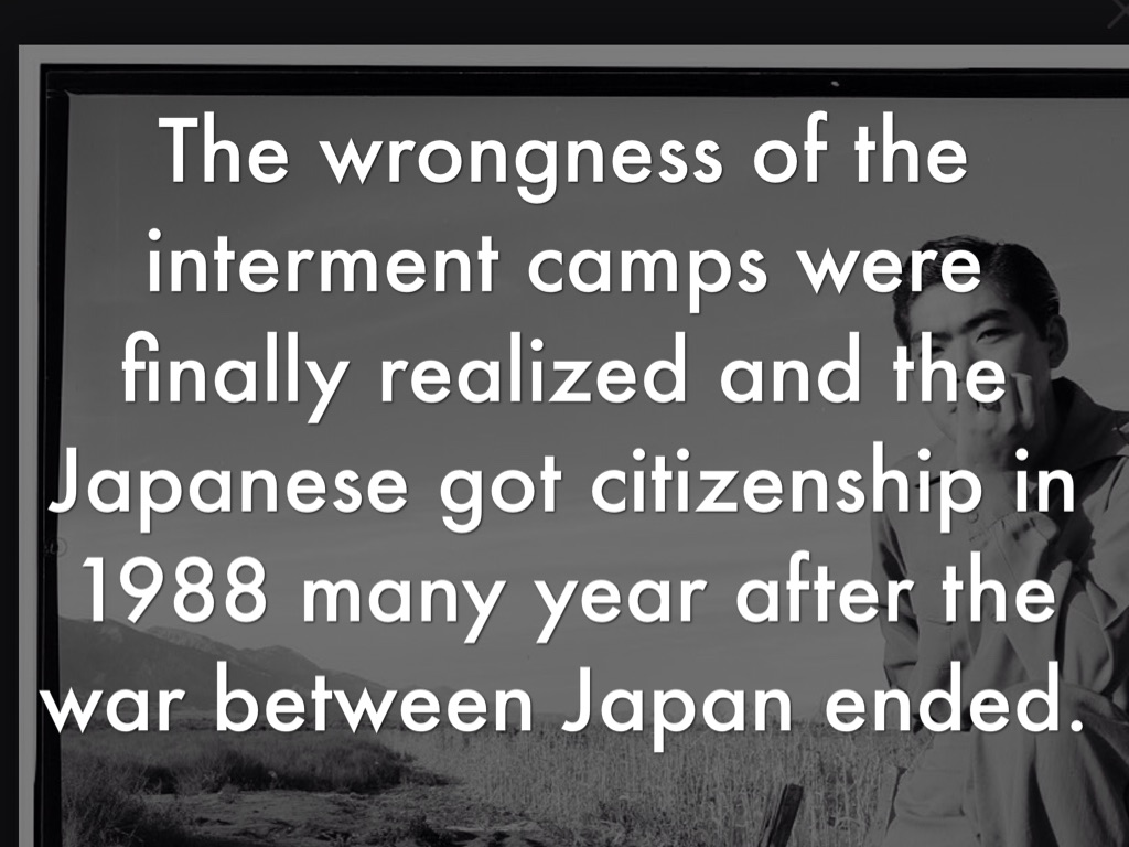 The wrongness of the interment camps were finally realized and the Japanese got citizenship in 1988 many year after the war between Japan ended.