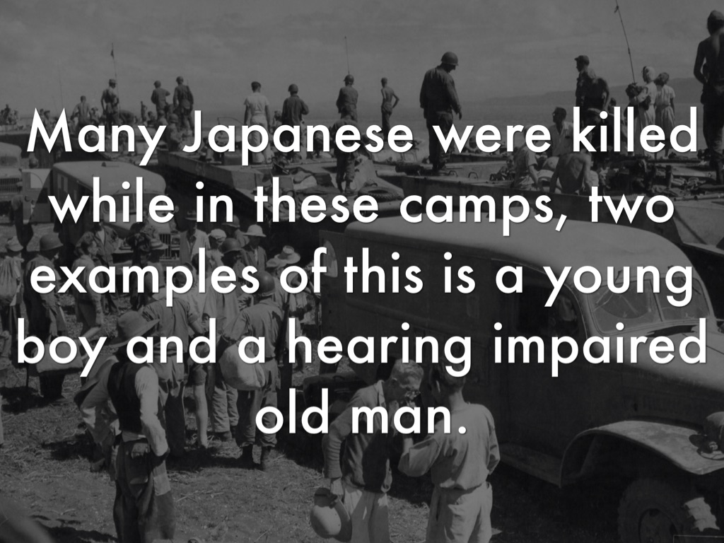 Many Japanese were killed while in these camps, two examples of this is a young boy and a hearing impaired old man.