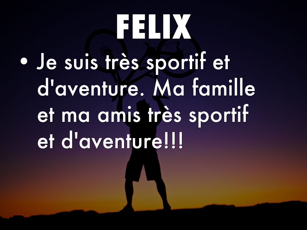 Je suis très sportif et d'aventure. Ma famille et ma amis très sportif et d'aventure!!!