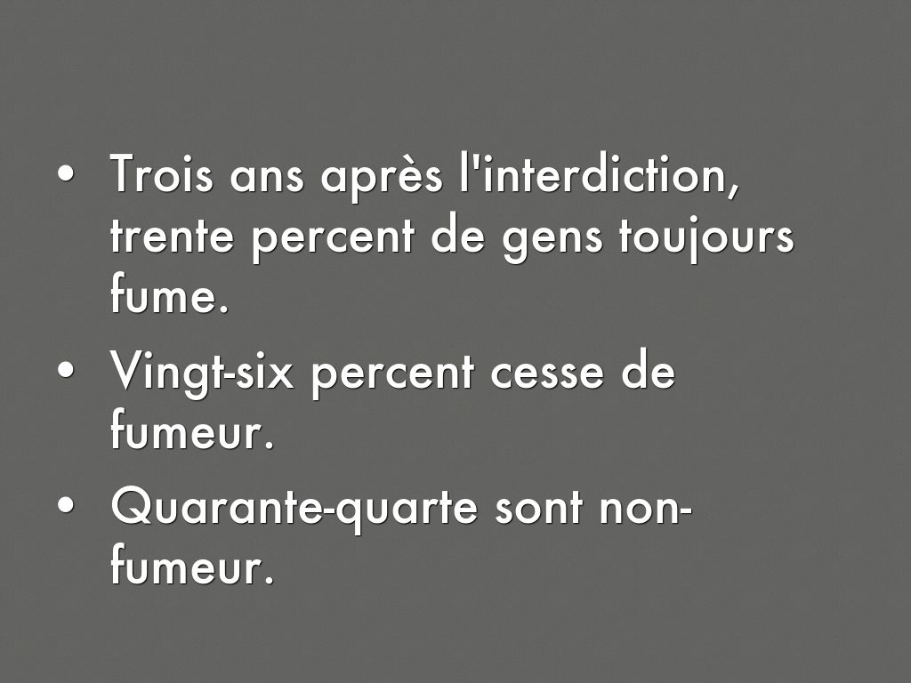 Trois ans après l'interdiction, trente percent de gens toujours fume.