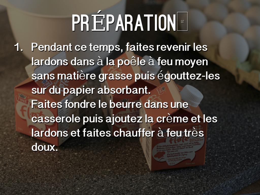 - Pendant ce temps, faites revenir les lardons dans à la poêle à feu moyen sans matière grasse puis égouttez-les sur du papier absorbant.