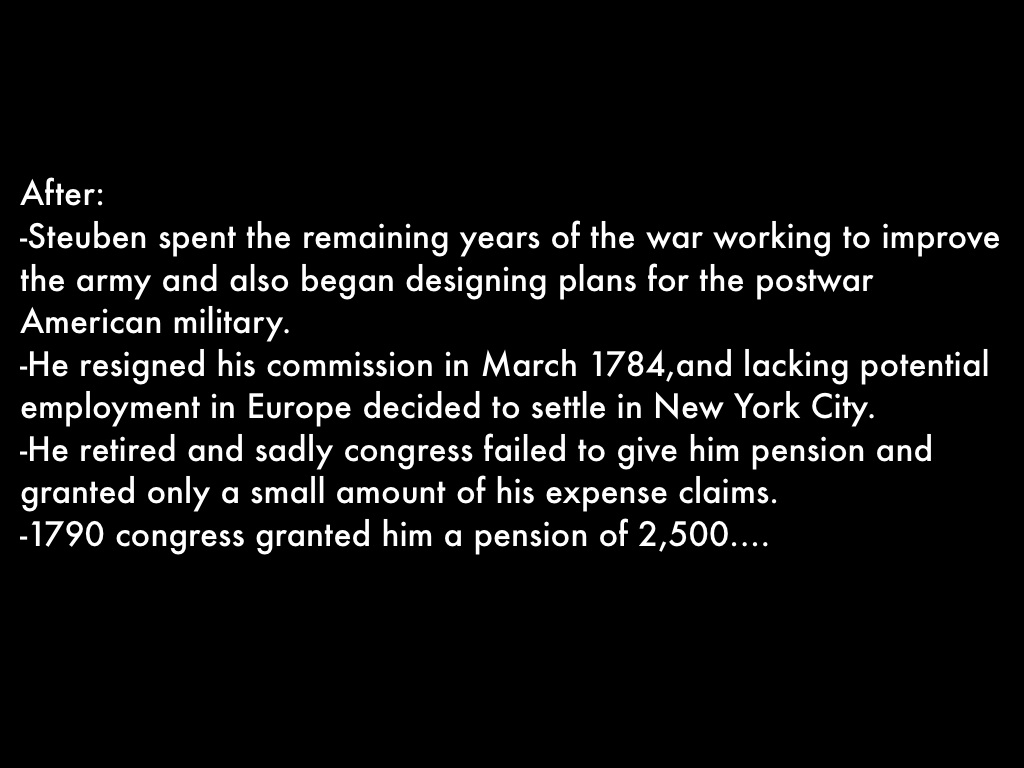 -Steuben spent the remaining years of the war working to improve the army and also began designing plans for the postwar American military.