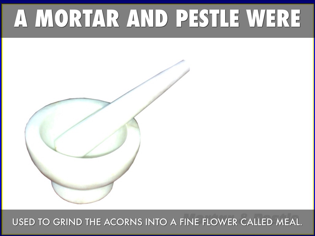 USED TO GRIND THE ACORNS INTO A FINE FLOWER CALLED MEAL.