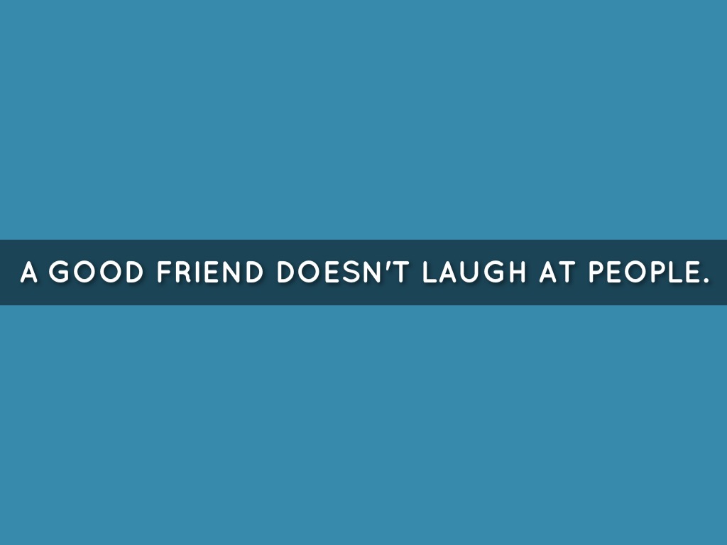 A GOOD FRIEND DOESN'T LAUGH AT PEOPLE.