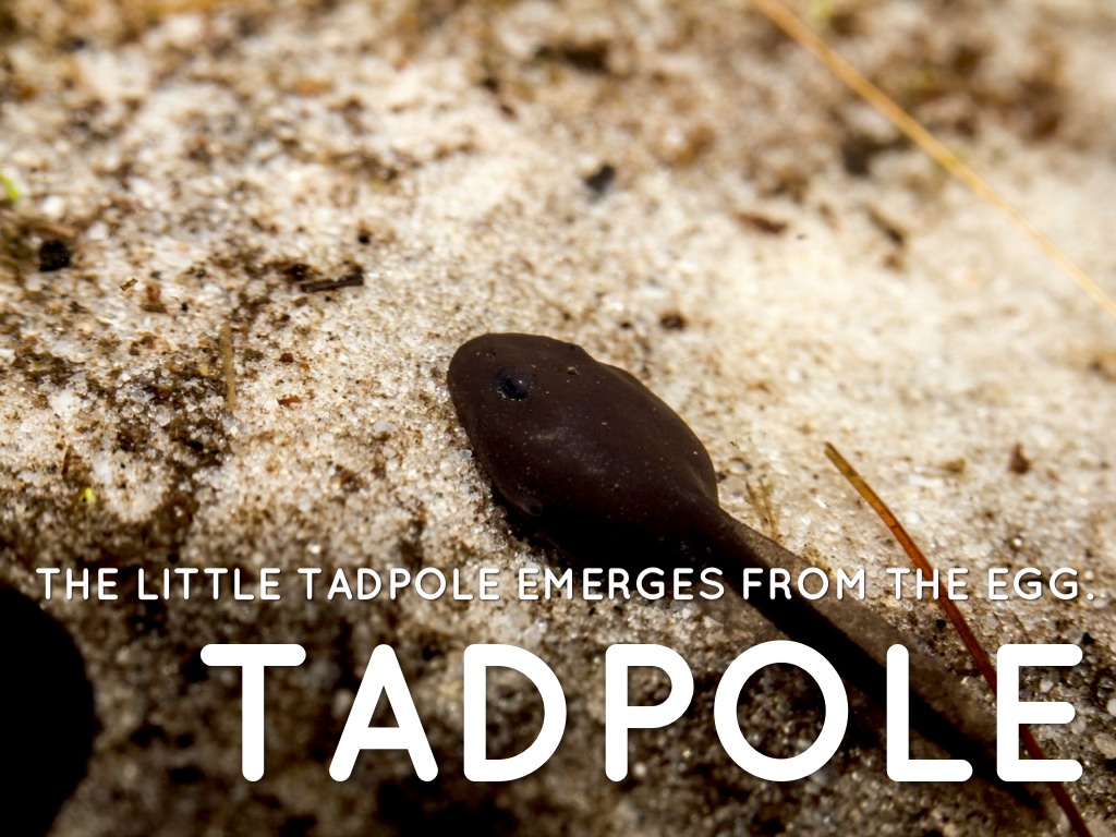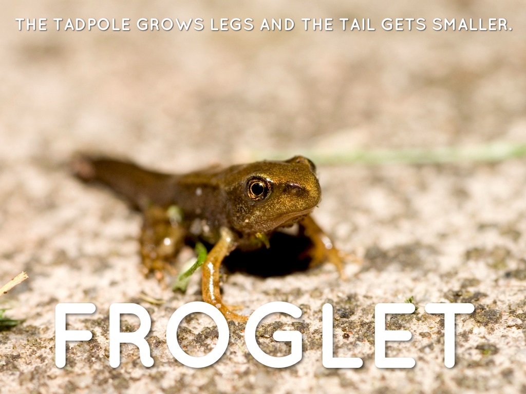 THE TADPOLE GROWS LEGS AND THE TAIL GETS SMALLER.