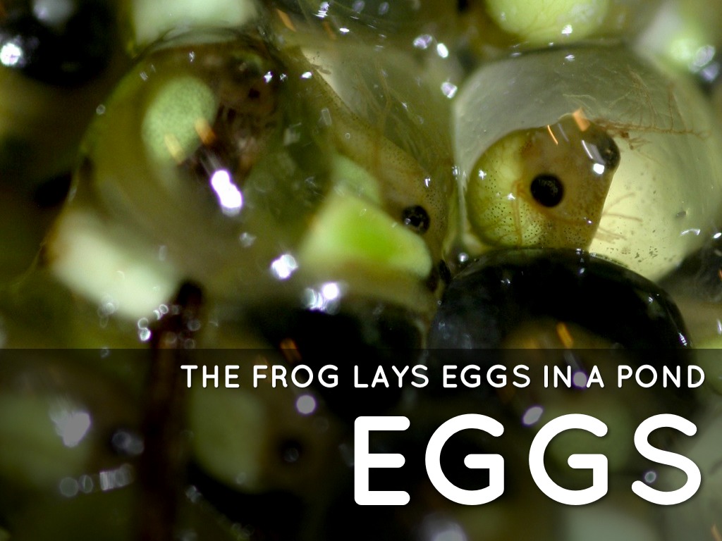 THE LITTLE TADPOLE EMERGES FROM THE EGG.