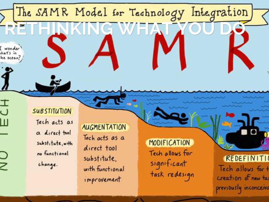 Think about how you use technology, how students use technology Don't throw out what you do - think about it differently. Don't be afraid to give creative license Don't be afraid to give up control