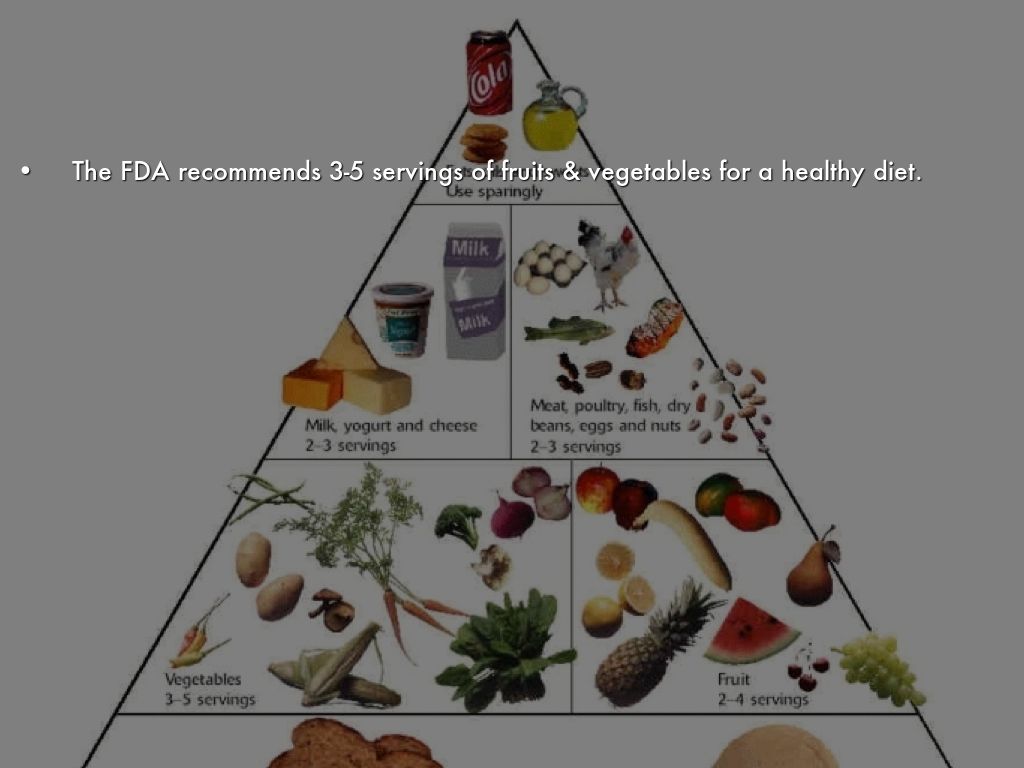 The FDA recommends 3-5 servings of fruits & vegetables for a healthy diet.