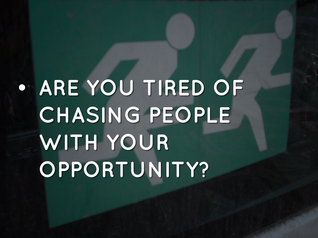 ARE YOU TIRED OF CHASING PEOPLE WITH YOUR OPPORTUNITY?