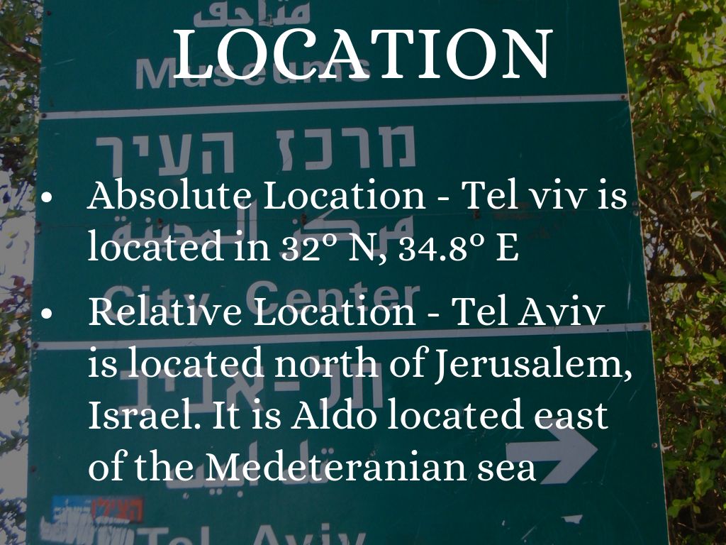 Absolute Location - Tel viv is located in 32° N, 34.8° E