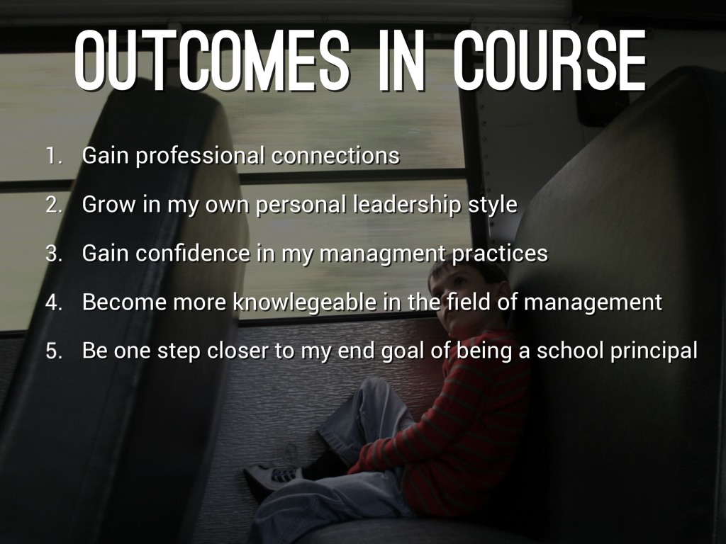 USE THIS KNOWLEDGE IN MY CURRENT CLASSROOM TO BETTER MYSELF AS A MANAGER AND LEADER.