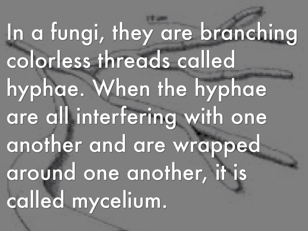 In a fungi, they are branching colorless threads called hyphae. When the hyphae are all interfering with one another and are wrapped around one another, it is called mycelium.
