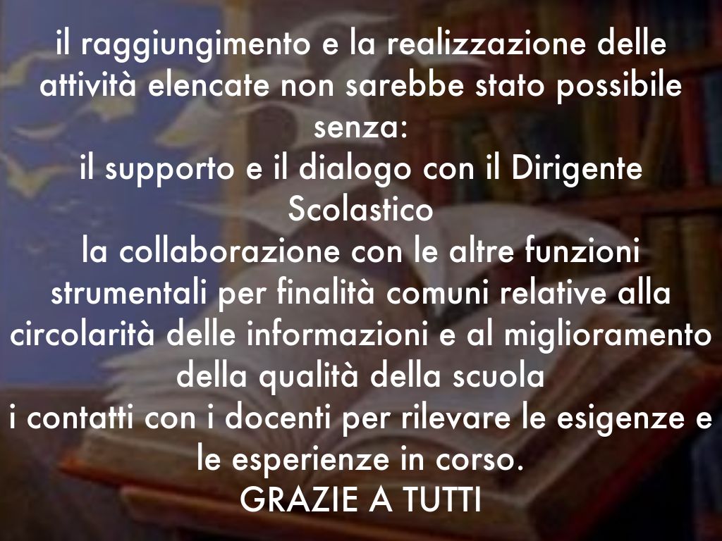 il raggiungimento e la realizzazione delle attività elencate non sarebbe stato possibile senza: