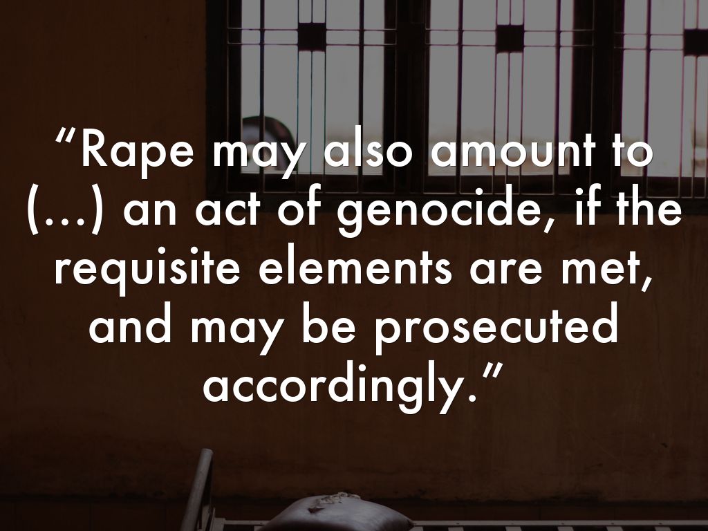 “Rape may also amount to (…) an act of genocide, if the requisite elements are met, and may be prosecuted accordingly.”