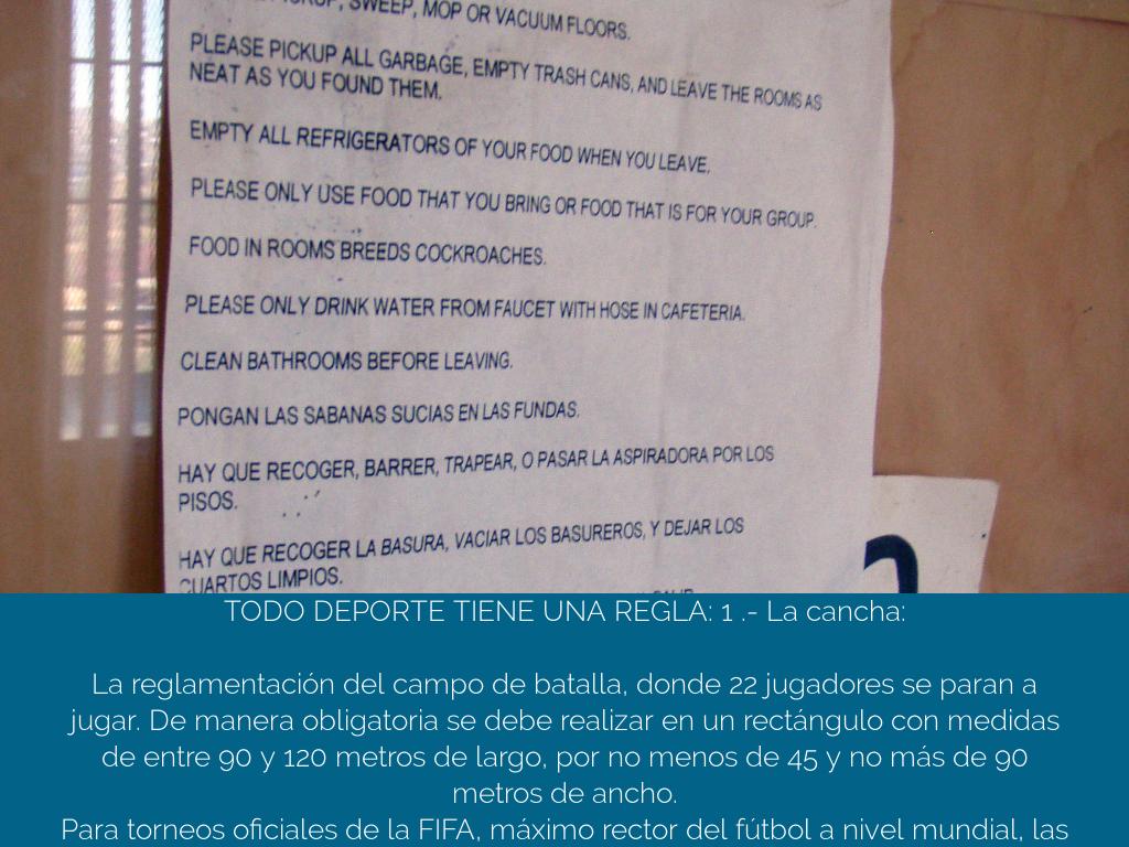 TODO DEPORTE TIENE UNA REGLA: 1 .- La cancha: