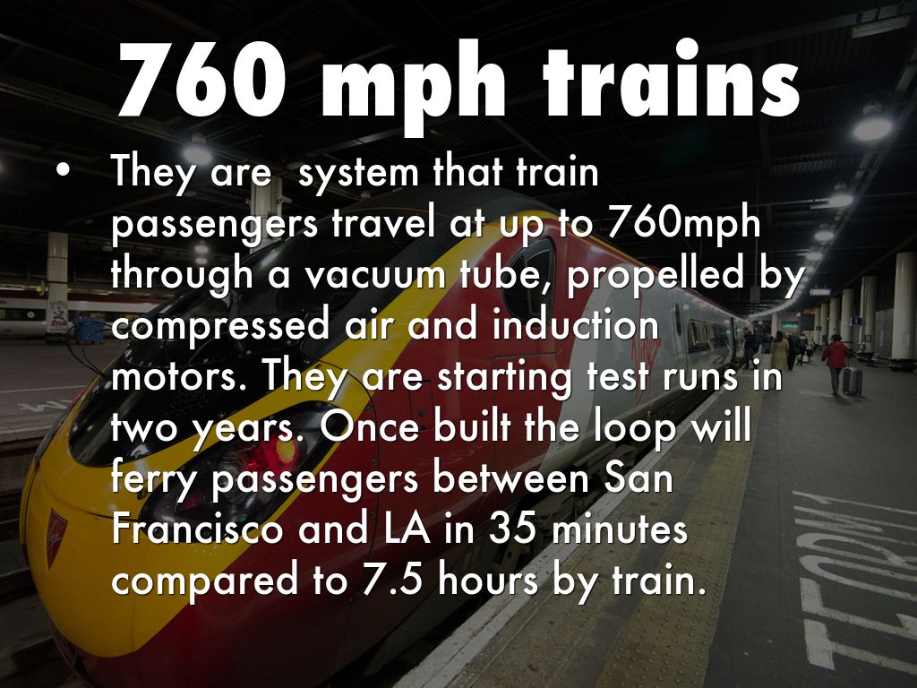 They are system that train passengers travel at up to 760mph through a vacuum tube, propelled by compressed air and induction motors. They are starting test runs in two years. Once built the loop will ferry passengers between San Francisco and LA in 35 minutes compared to 7.5 hours by train.