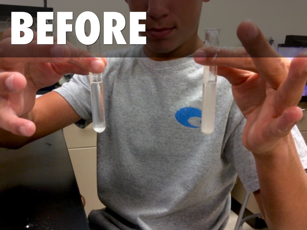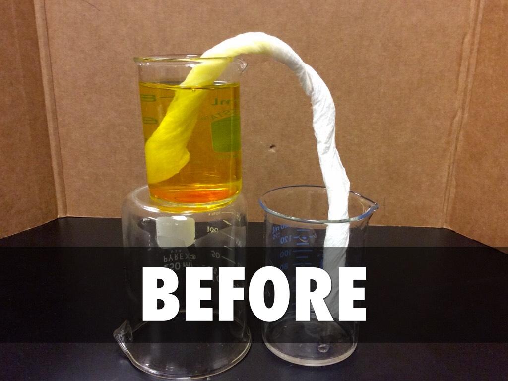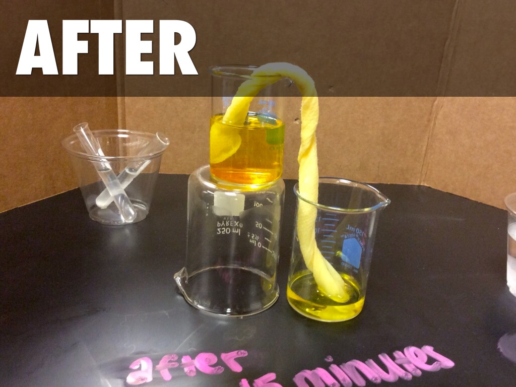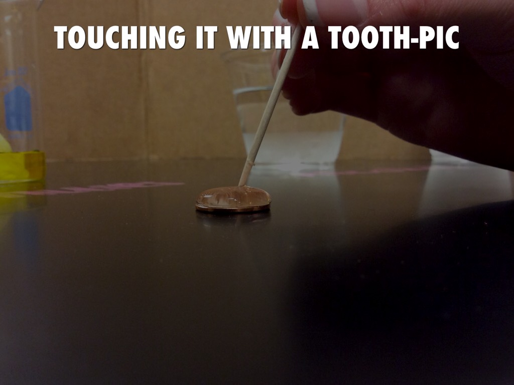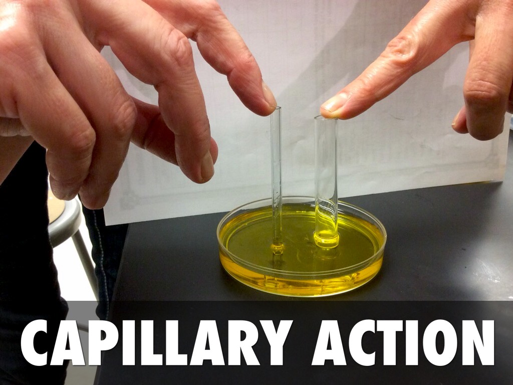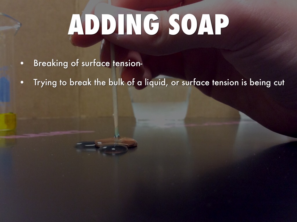 Trying to break the bulk of a liquid, or surface tension is being cut