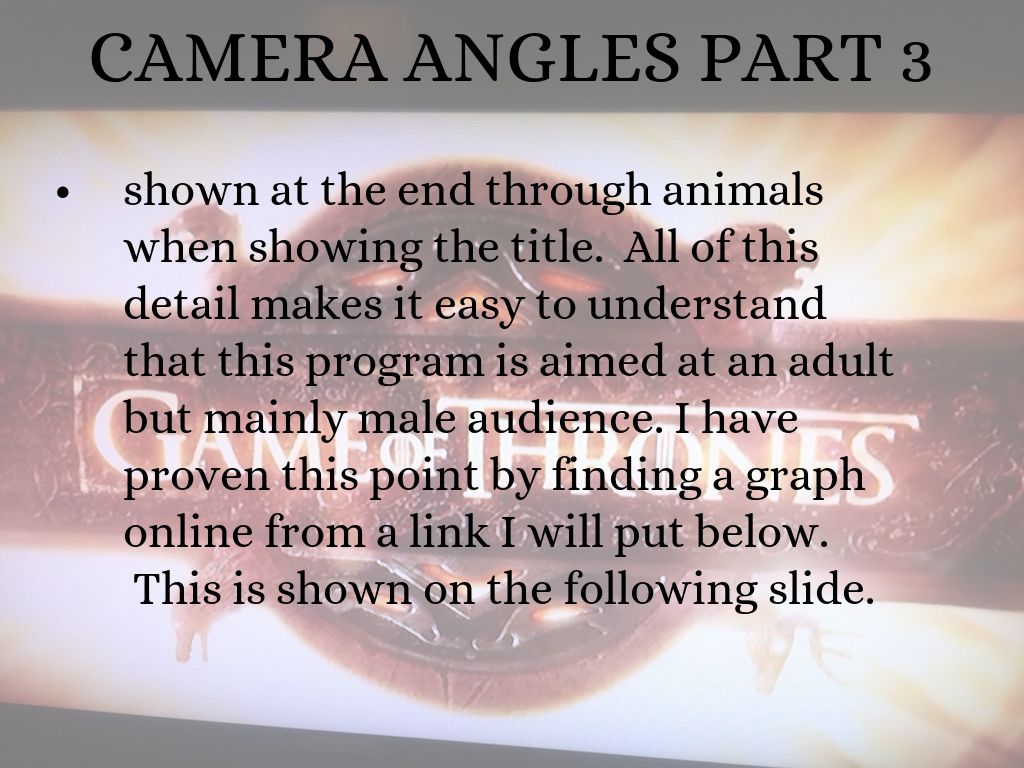 • shown at the end through animals when showing the title. All of this detail makes it easy to understand that this program is aimed at an adult but mainly male audience. I have proven this point by finding a graph online from a link I will put below. This is shown on the following slide.