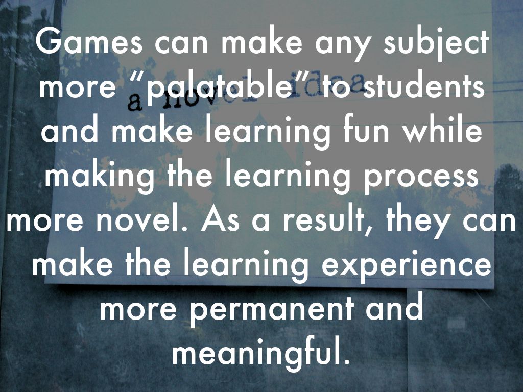 Games can make any subject more “palatable” to students and make learning fun while making the learning process more novel. As a result, they can make the learning experience more permanent and meaningful.