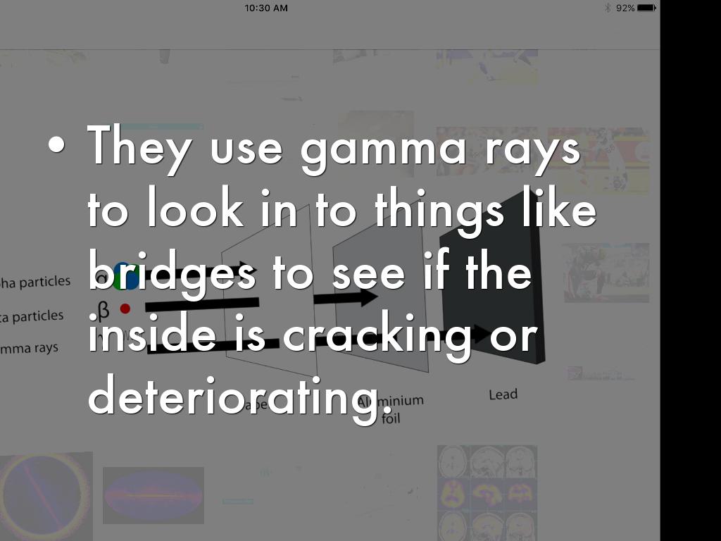 They use gamma rays to look in to things like bridges to see if the inside is cracking or deteriorating.