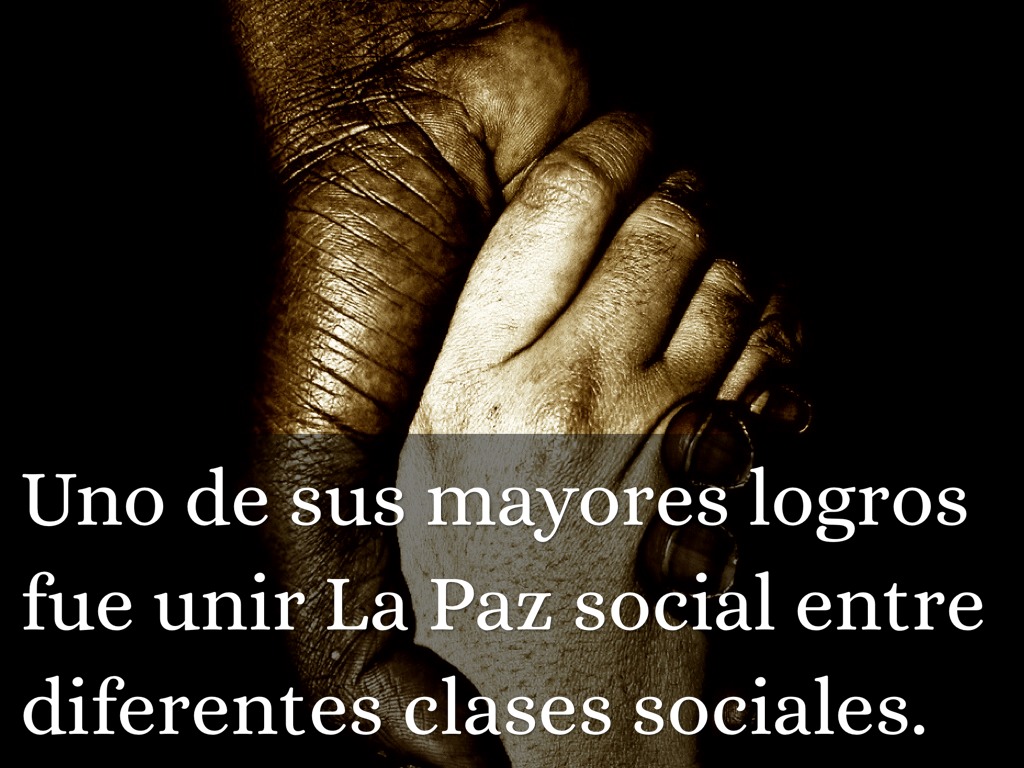 Uno de sus mayores logros fue unir La Paz social entre diferentes clases sociales.