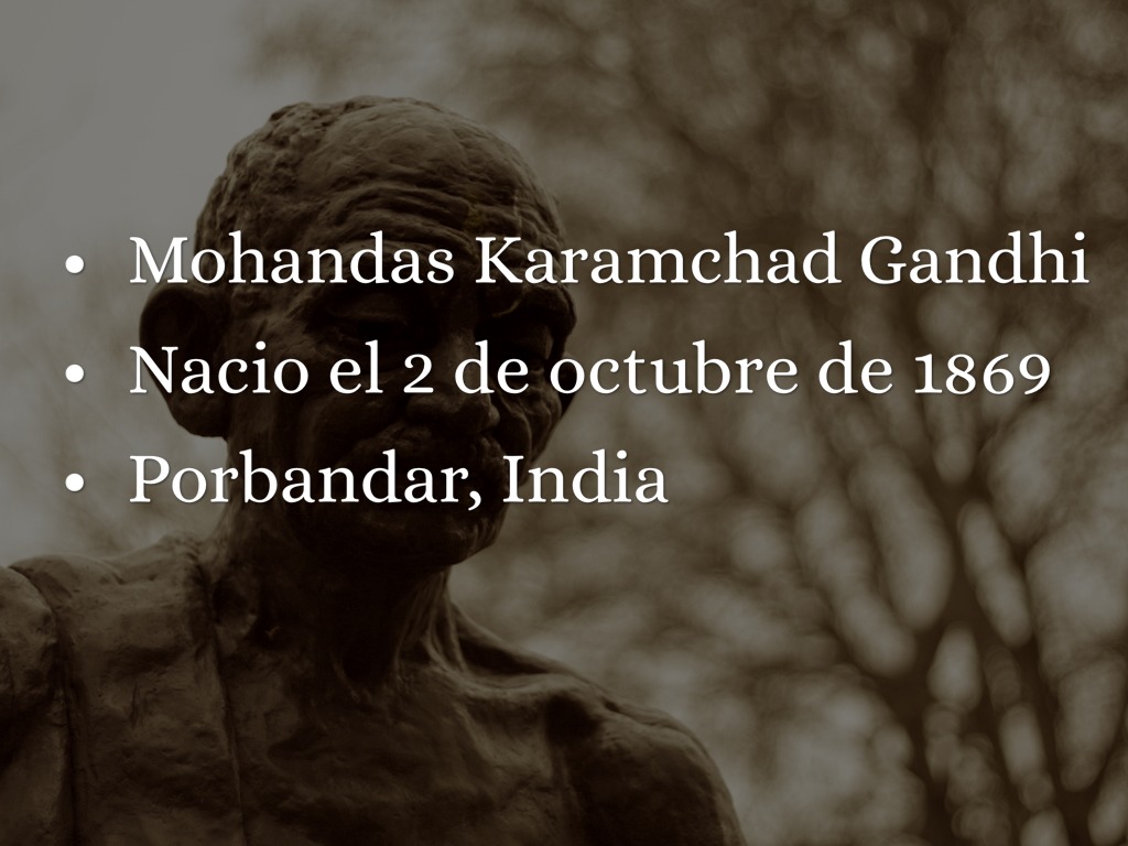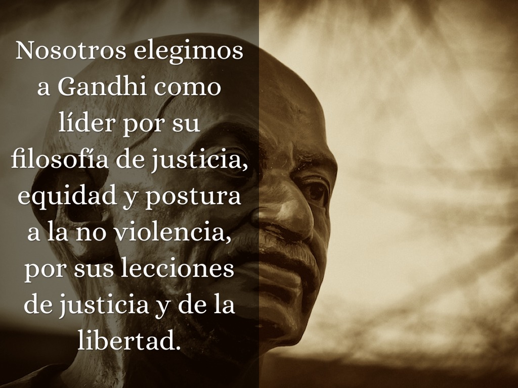 Nosotros elegimos a Gandhi como líder por su filosofía de justicia, equidad y postura a la no violencia, por sus lecciones de justicia y de la libertad.