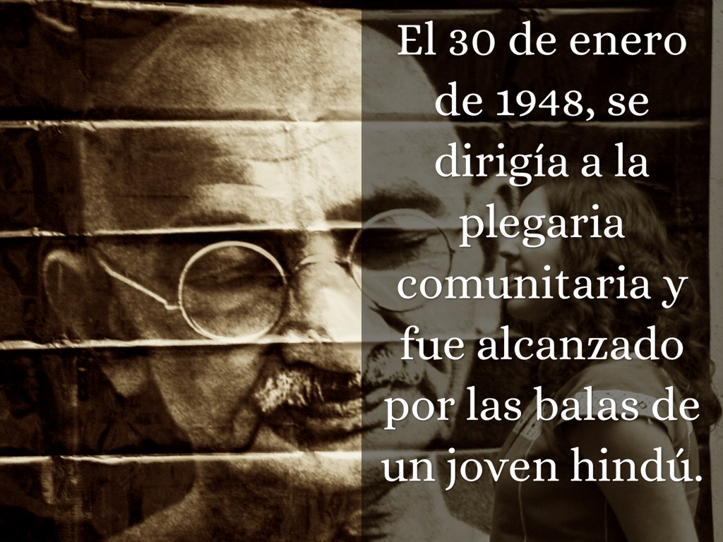 El 30 de enero de 1948, se dirigía a la plegaria comunitaria y fue alcanzado por las balas de un joven hindú.