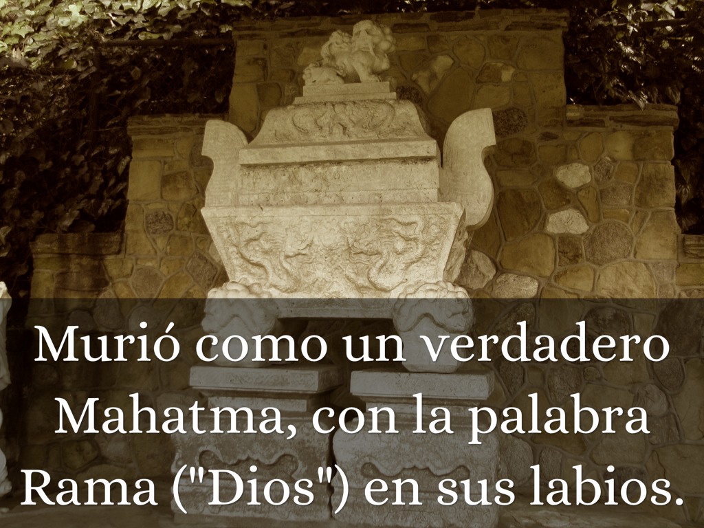 Murió como un verdadero Mahatma, con la palabra Rama ("Dios") en sus labios.