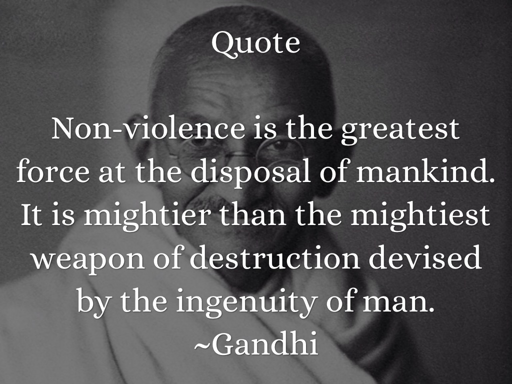 Non-violence is the greatest force at the disposal of mankind. It is mightier than the mightiest weapon of destruction devised by the ingenuity of man.
