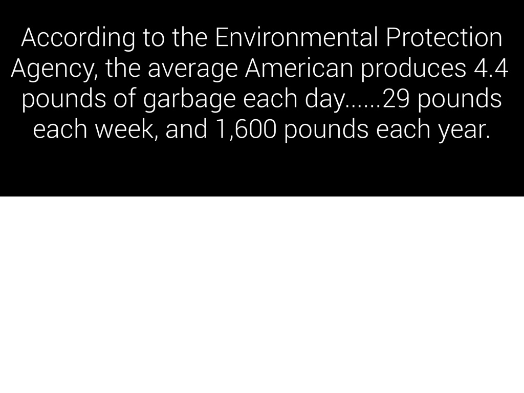 According to the Environmental Protection Agency, the average American produces 4.4 pounds of garbage each day......29 pounds each week, and 1,600 pounds each year.