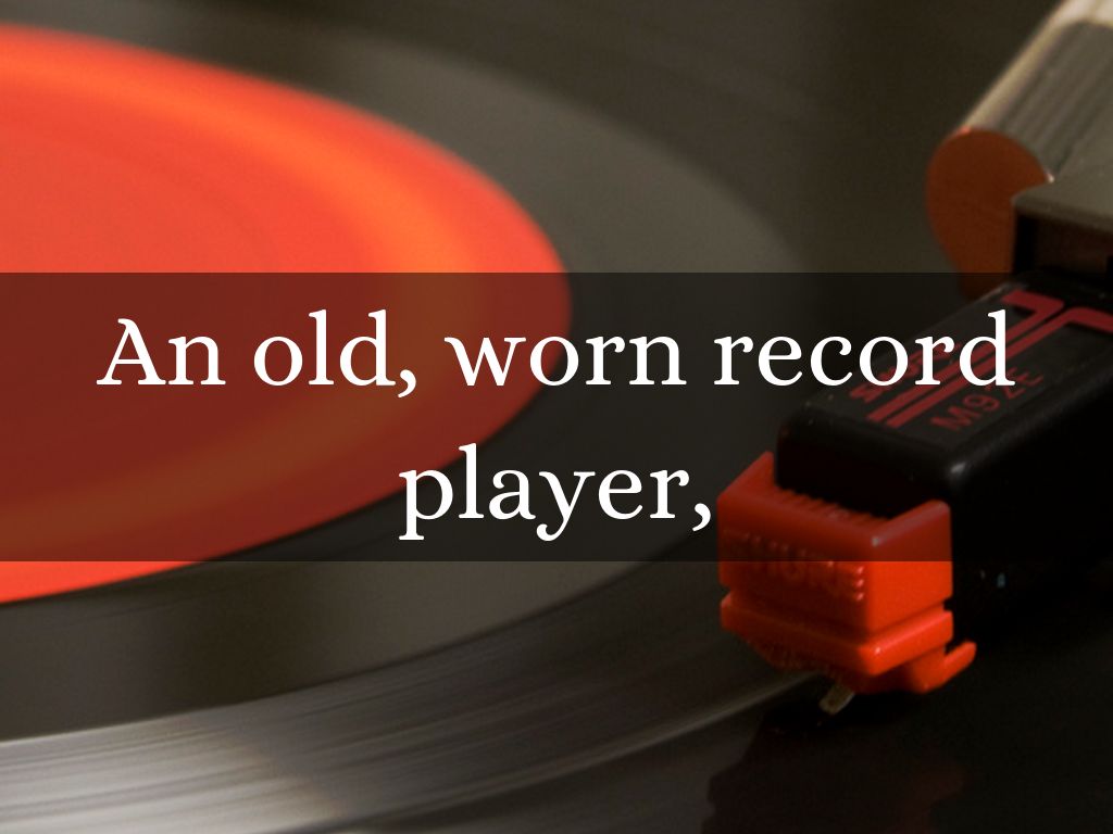 An old, worn record player,