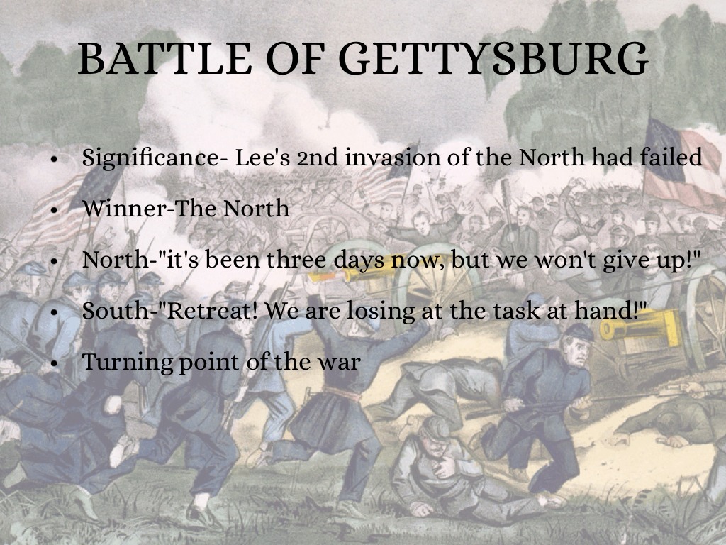 Significance- it gave Abraham Lincoln the victory he desired before he passed the Emancipation Proclamation BLOODIEST DAY