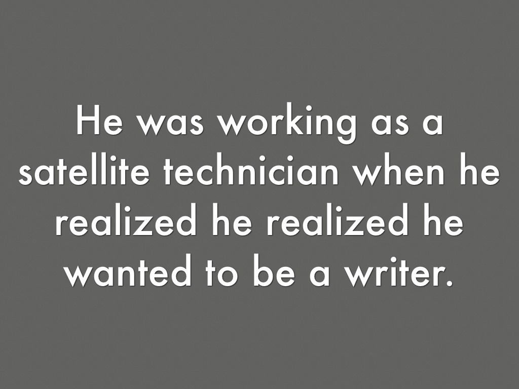 He was working as a satellite technician when he realized he realized he wanted to be a writer.