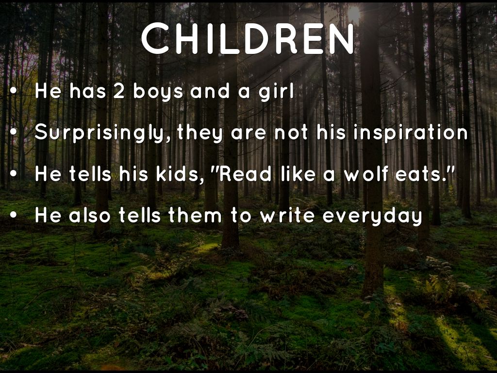 He tells his kids, "Read like a wolf eats."