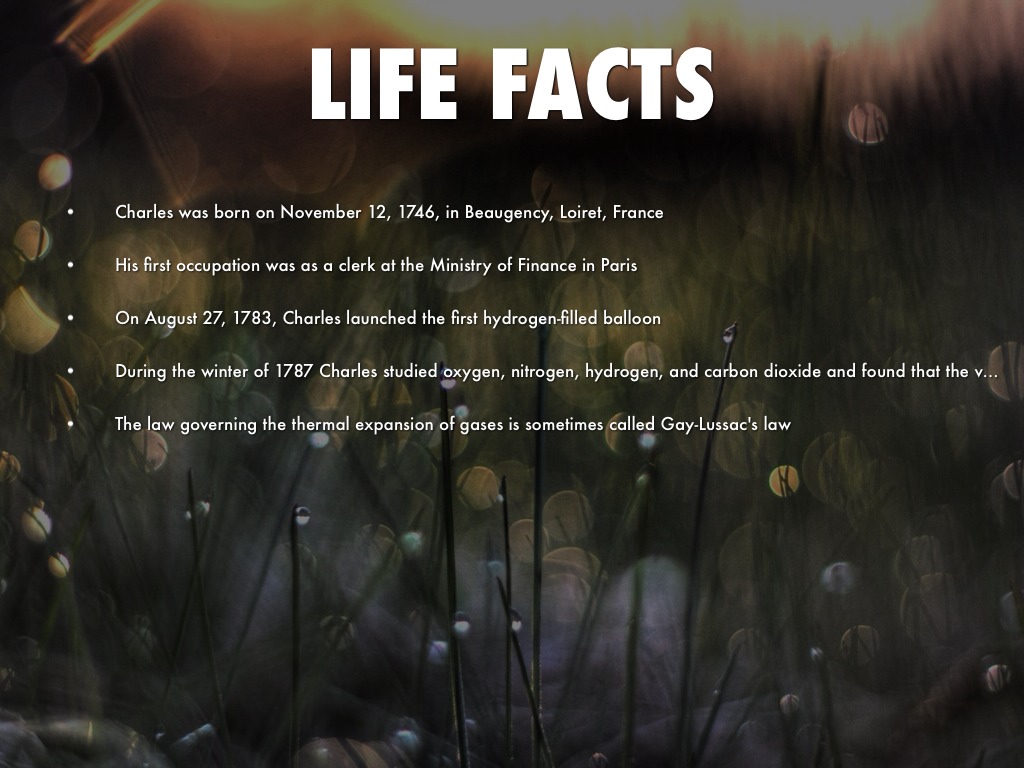During the winter of 1787 Charles studied oxygen, nitrogen, hydrogen, and carbon dioxide and found that the volume of all these gases increased identically with higher temperature