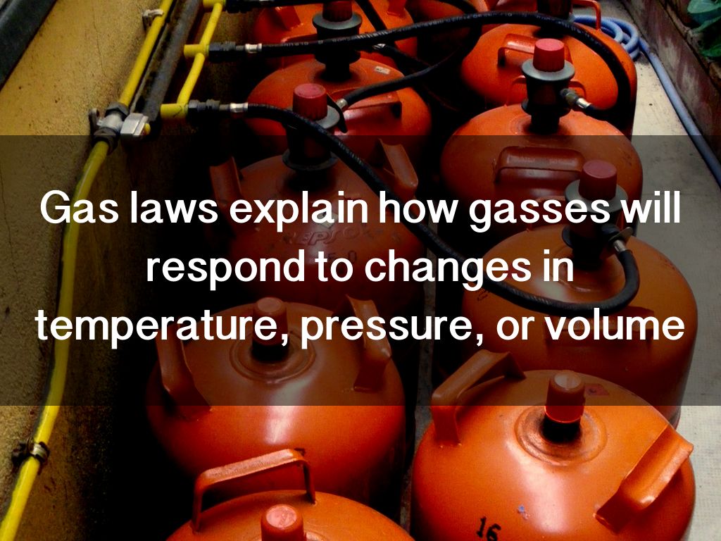 Gas laws explain how gasses will respond to changes in temperature, pressure, or volume