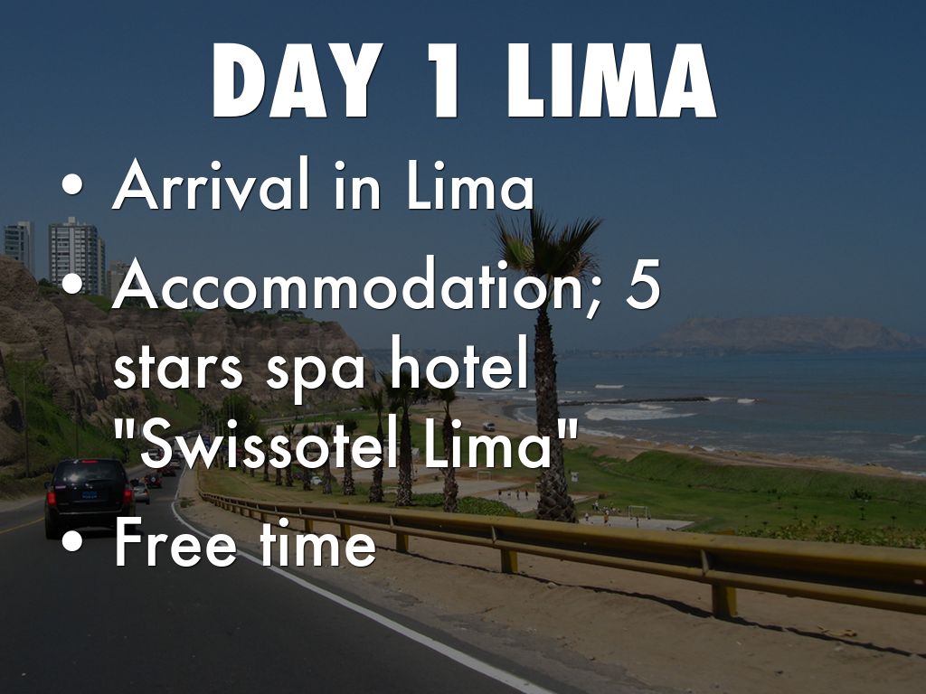 • Accommodation; 5 stars spa hotel "Swissotel Lima".
