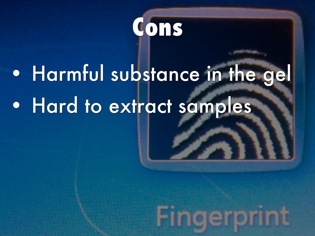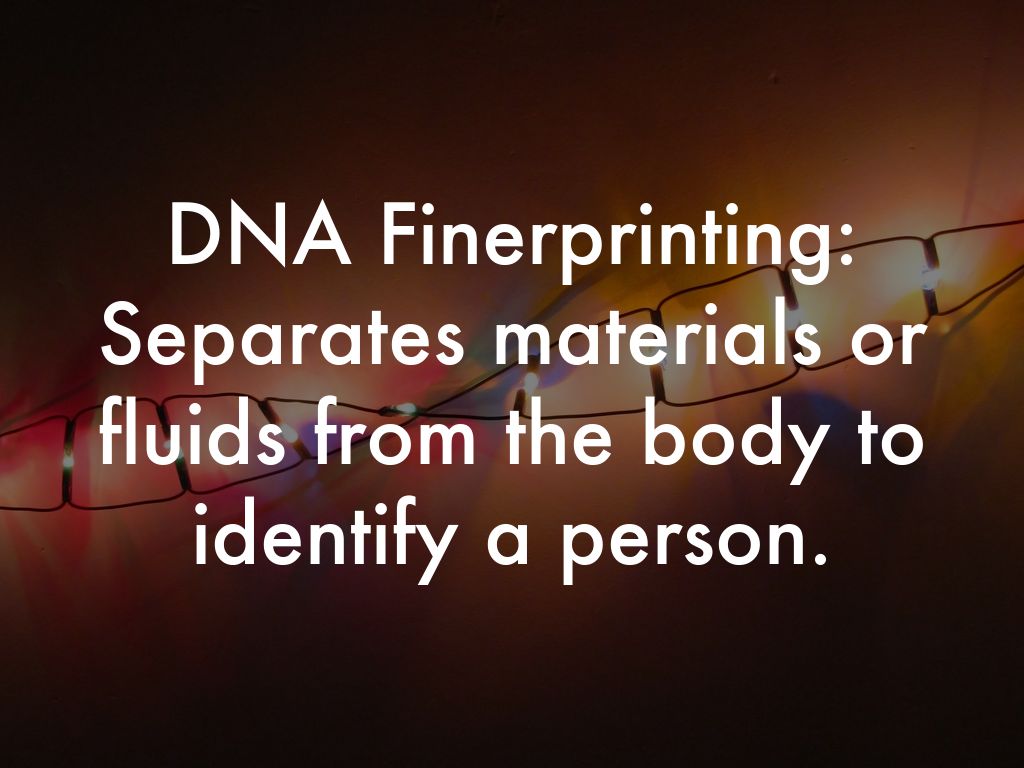DNA Finerprinting: Separates materials or fluids from the body to identify a person.