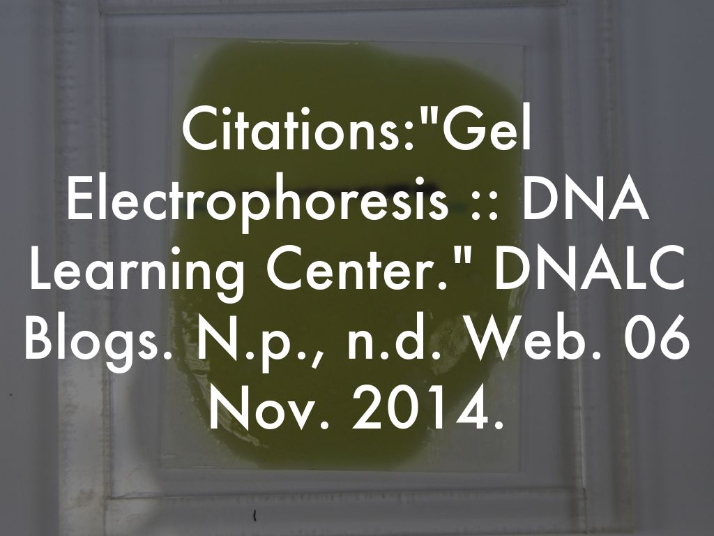 Citations:"Gel Electrophoresis :: DNA Learning Center." DNALC Blogs. N.p., n.d. Web. 06 Nov. 2014.