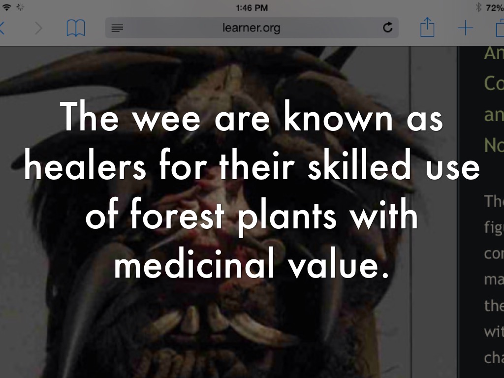 The wee are known as healers for their skilled use of forest plants with medicinal value.